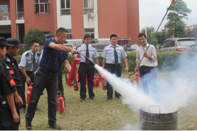 演练指挥部对演练场地的选定、实操设备的准备做了大量工作,为演练的顺利开展做了充分准备工作。彭涛在演练前进行了动员,他介绍了本次演练的意义及重要性;校保卫处消防科同志进行了灭火器使用方法并进行了操作,每个着火点都安排人员给予专业指导。