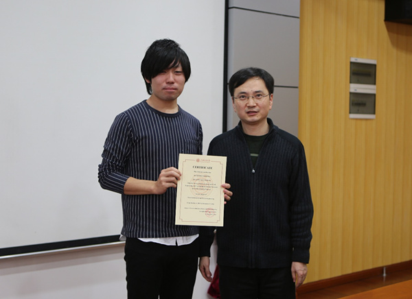 研究生的友情,增进了对中国文化的理解。报告会结束后,项目负责人张新曙为四名日本交流生颁发了结业证书并表示祝贺。