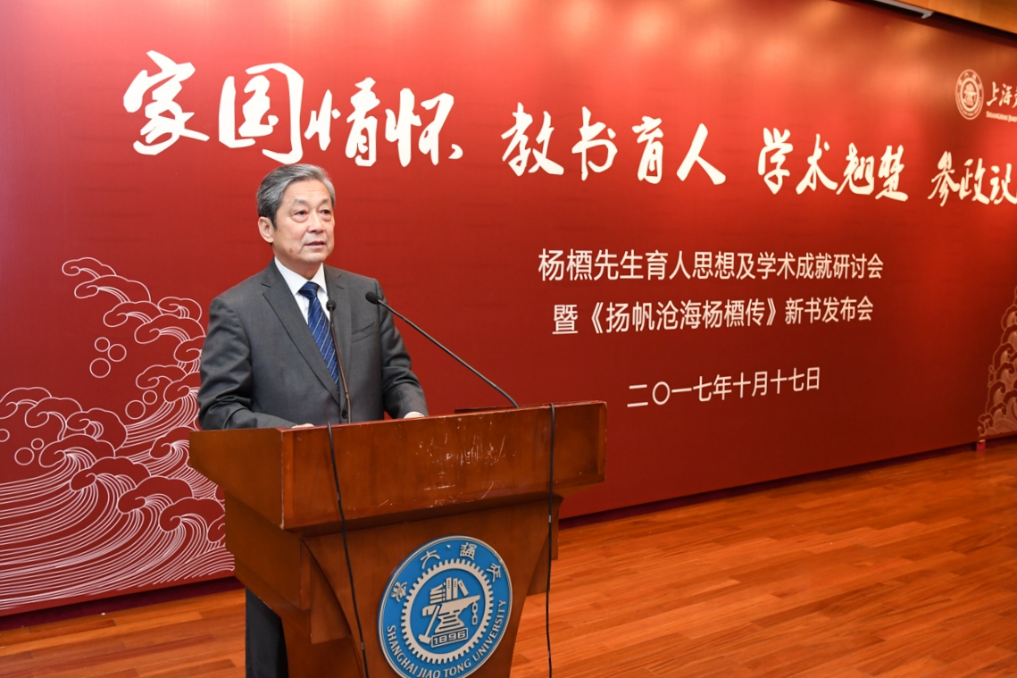 林忠钦代表上海交通大学致辞,向杨槱先生表示崇高敬意和热烈祝贺。林忠钦指出,立德树人是教育的根本任务,在大力推进“双一流”建设之际,学习、研讨杨槱先生的育人思想和学术成就,既是为了表达对杨槱先生的崇敬和景仰之情,更是为了学习和发扬他热爱祖国、甘于奉献的崇高精神,传承他孜孜以求、严谨踏实的治学风格和谦虚豁达、平易近人的人格风范。林忠钦强调,在杨先生百岁寿辰之际,重温他的学术经历和人生经历,重温我国造船学科从无到有、从弱到强的发展历程,必将激励大家以先生为榜样,学习他以国家和民族利益为重的家国情怀,学习他淡泊名利、坚持真理的治学精神,进一步推进师德建设和学科建设,为把我国建设成海洋强国,为国家和民族的昌盛不懈努力。