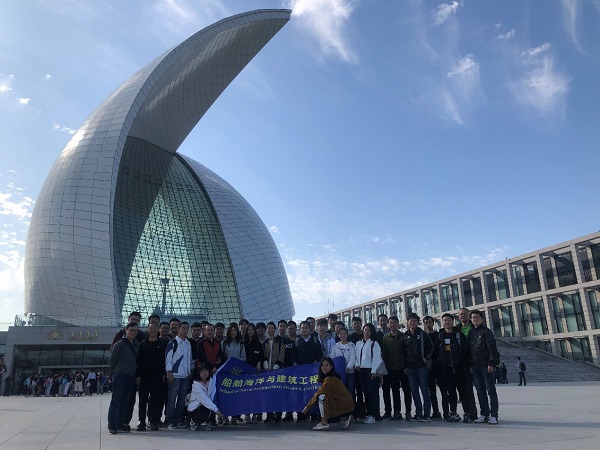 16日上午,陈务军教授师生一行首先来到了位于浦东南汇新城的中国航海博物馆。该博物馆是中国首个经国务院批准设立的国家级航海博物馆,由交通运输部和上海市政府在上海共建,其结构主体由曲面刚结构和预应力单层索网玻璃幕墙组成,其中异型双曲面超预应力单层索网玻璃幕墙在国内尚属首例。在实地参观过程中,陈老师结合现场壳体和索网,向同学们细致讲解了索网结构的设计方法、施工难点等内容。同学们也结合课堂所学知识不断提问并积极讨论,取得了良好的现场教学效果。索网结构观摩实习结束后,同学们参观了博物馆的相关展品,对我国船舶制造技术发展历程有了更为清晰的认知。