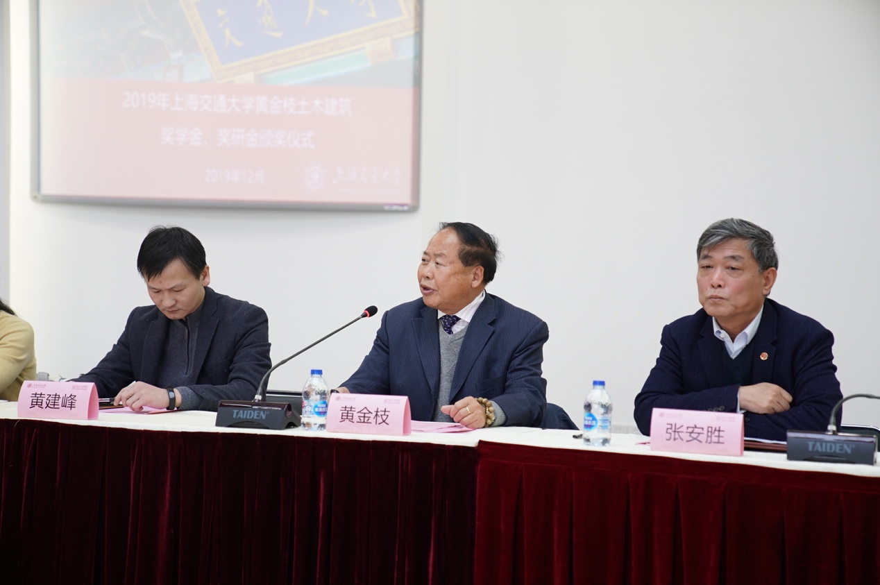 12月20日,上海交通大学“黄金枝土木建筑奖学金、奖研金”颁奖仪式在闵行校区网络信息中心大楼九楼会议室举行 。上海黄金枝教育发展基金会理事长黄金枝,基金会秘书长黄建峰,基金会副秘书长陈倩茹,基金会副秘书长王亚民一行出席仪式。上海交大党委常委、副校长张安胜,上海交大教育发展基金会副秘书长黄金贤、秘书长助理于洋,设计凯发 党委书记方曦、副院长韩挺、建筑学系党支部书记刘士兴、建筑学系副教授张会波、学生工作负责人武超、思政教师车易嬴,凯发官网 土木工程系主任陈锦剑、土木工程系助理研究员李明广、校友事务联系人魏燕、团委书记赵恺及全体获奖师生参加仪式。仪式由设计凯发 副院长韩挺主持。