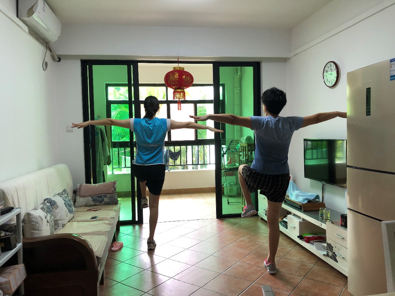 博士三年级的赵国成是支部里的科创明星,他获得过国奖、十五届“挑战杯”特等奖、全国大学生小平科技创新团队、交大年度人物。令大家没想到的是,“学神”不仅仅科研强,运动起来也是霸气十足。在疫情居家期间,他微信运动步数已连续近一个月保持在2~3万步,长期霸占支部同学的步数排行榜榜首。他说:“居家运动一来能提高免疫力,二是暴汗燃脂改善精神状态,三还可以通过这样的家庭趣味运动增添生活乐趣。”他选择的是跳舞毯,这不仅仅增添了室内有氧运动的趣味性,还可以跟家人共同完成,增强互动性。他每天上下午分别锻炼一次,每次锻炼两小时左右,因为跑步比较累,跑累了就切换到跳舞游戏模式,稍作休息再切换到快速跑步模式,每次锻炼到全身湿透。酣畅淋漓的运动不仅让他瘦身有成,还大大改善了以往被忽略的身心状态。