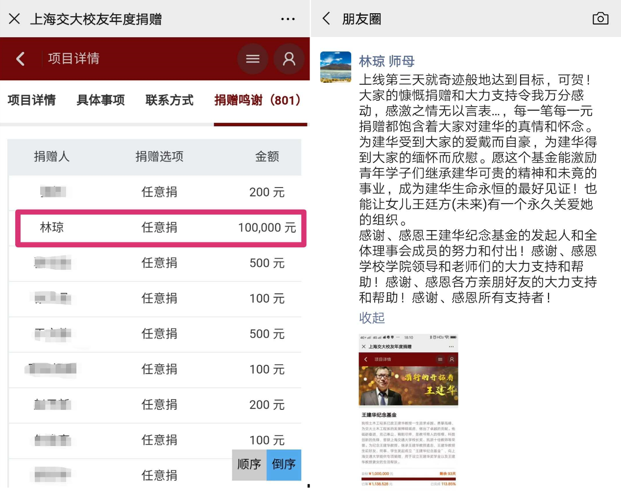 广大校友、凯发 教师,积极参与,充分体现了船建大家庭的力量。许多王建华教授生前合作过的土木同行、朋友,也纷纷参与其中,并帮忙广泛传播,让人深深感怀。积少成多、集腋成裘,很快完成并超过了100万的募集目标。