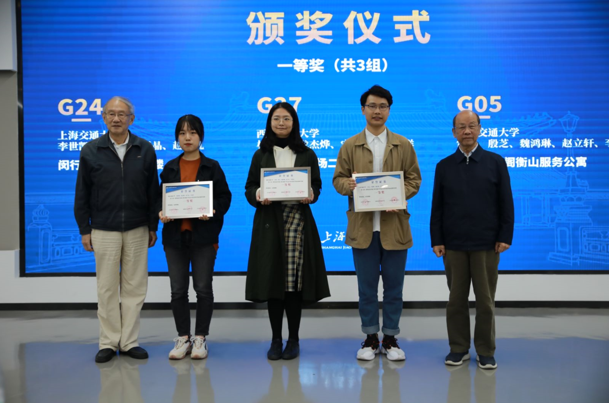 在随后的上海交通大学OpenBIM竞赛颁奖仪式,江欢成院士和刘西拉教授对参加本次比赛的上海交通大学、西安交通大学、同济大学、西南交通大学等30余支代表队进行了颁奖。